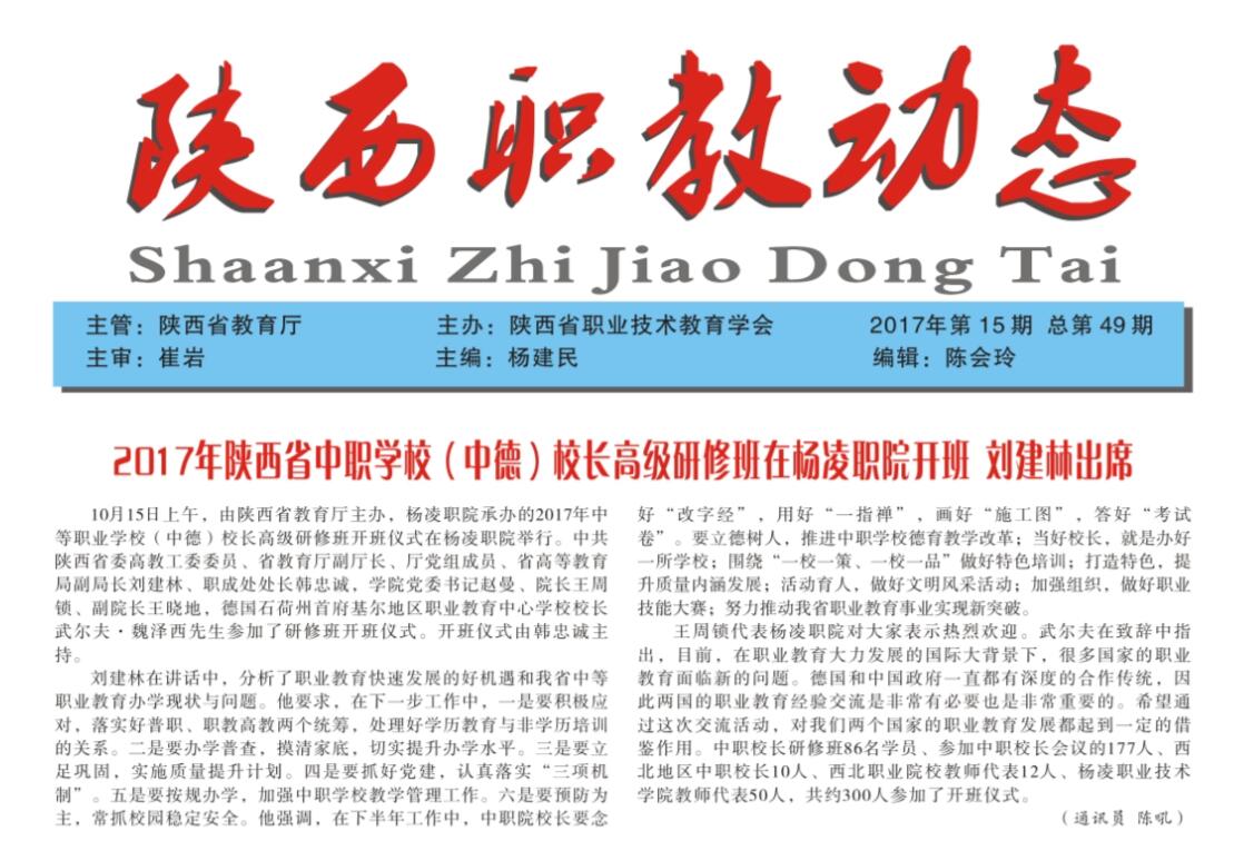 【陕西职教动态】2017年第15期报道摘要