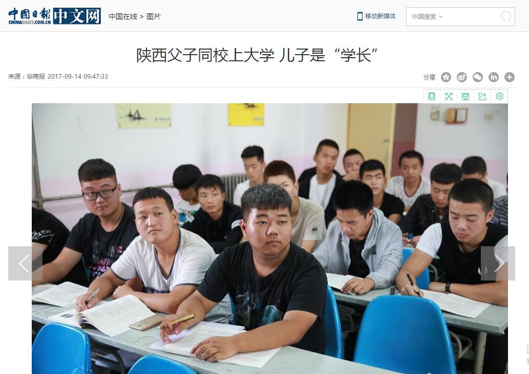 9月14日消息,这个开学季,杨凌职业技术学院(简称杨凌职院)校园里有一对特殊的父子,父亲是富平县庄里镇神芝村44岁的孙新科,他是杨凌职院生物工程分院富平职业农民学历教育班的一名新生,9月10日报名后,他正式成为一名大学生。而他21岁的儿子孙英康是该院交通与测绘工程分院工程测量技术专业的大二学生,算是父亲的“学长”了。