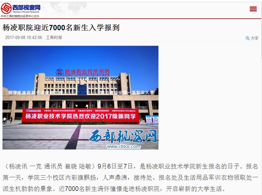 (杨凌讯 一克 通讯员 崔晓 陆敏)9月6日至7日,是杨凌职业技术学院新生报名的日子。报名第一天,学院三个校区内彩旗飘扬,人声鼎沸,接待处、报名处及生活用品军训衣物领取处一派生机勃勃的景象。近7000名新生满怀憧憬走进杨凌职院,开启崭新的大学生活。