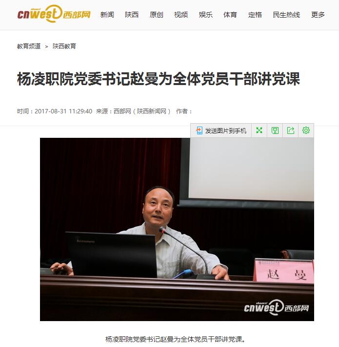 杨凌职院党委书记赵曼为全体党员干部讲党课。