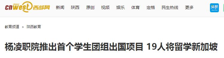 据了解,本次学生短期留学项目是杨凌职业学院历史上首个学生团组出国项目,希望通过这次活动进一步扩大学生的国际视野,增强学生的海外就业和学习意识,全面提升学院的国际化办学水平。杨凌职业学院通过《学生留学及参加国际交流活动奖学金管理办法(试行)》选拔了19名获得国家级比赛一等奖、二等奖的学生,给予部分奖励用于参加这次项目。本次新加坡留学项目为期一周,活动内容包括高校的课堂学习、企业实习、文化参访等多项内容。(通讯员 钱坤 崔晓)