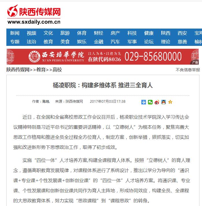 近日,在全国和全省高校思政工作会议召开后,杨凌职业技术学院深入学习传达会议精神特别是习近平总书记的重要讲话精神,以“立德树人”为根本任务,聚焦完善大思政工作格局和推进全员全过程全方位育人,制定方案,创新举措,狠抓落实,切实加强和改进新形势下思想政治工作,取得了初步成效。