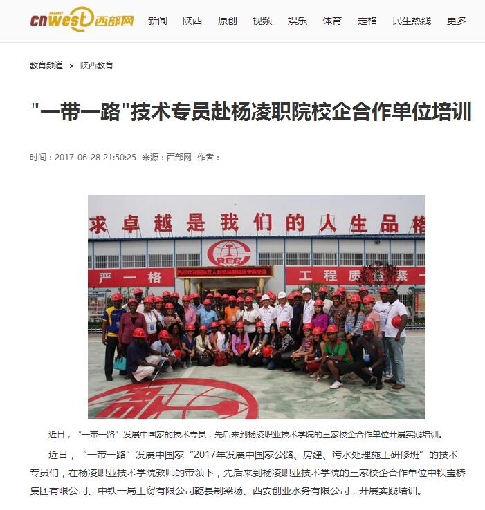 近日,“一带一路”发展中国家“2017年发展中国家公路、房建、污水处理施工研修班”的技术专员们,在杨凌职业技术学院教师的带领下,先后来到杨凌职业技术学院的三家校企合作单位中铁宝桥集团有限公司、中铁一局工贸有限公司乾县制梁场、西安创业水务有限公司,开展实践培训。
