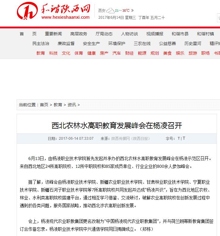 【和谐陕西网】西北农林水高职教育发展峰会在杨凌召开