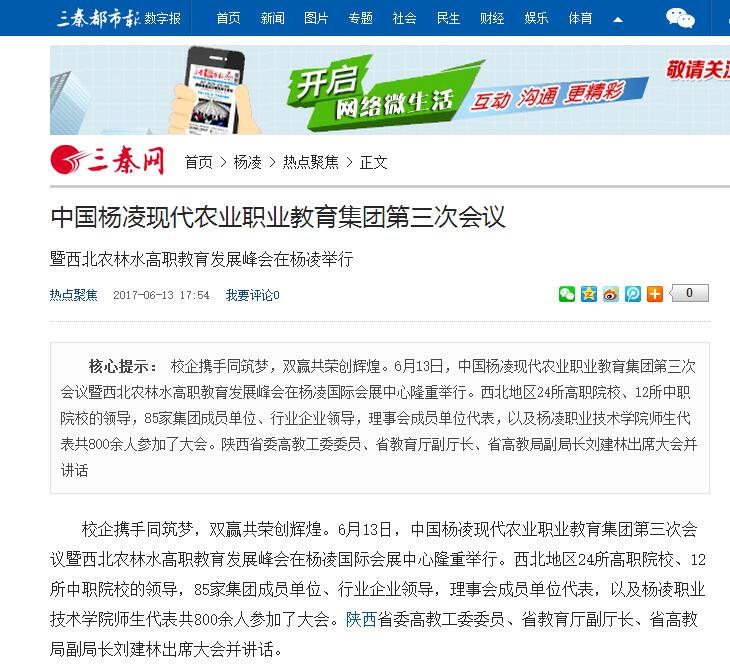 通过此次会议,进一步加强了政府、学校、企业、行业协会等单位之间的全方位合作,实现职业教育办学模式和人才培养模式创新;形成多层次、跨行业、多元化的职教发展体系;实现资源共享、优势互补、促进中国杨凌职教集团向特色化、品牌化方向发展,提升服务发展能力,为社会经济发展培养高素质技术技能人才及新型职业农民。