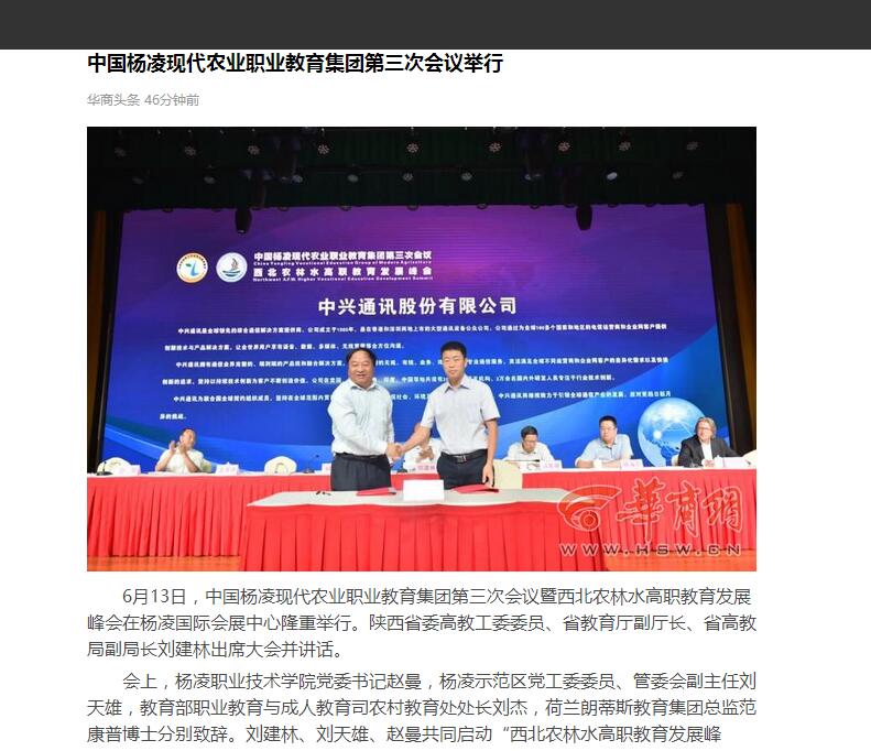 6月13日,中国杨凌现代农业职业教育集团第三次会议暨西北农林水高职教育发展峰会在杨凌国际会展中心隆重举行。陕西省委高教工委委员、省教育厅副厅长、省高教局副局长刘建林出席大会并讲话。