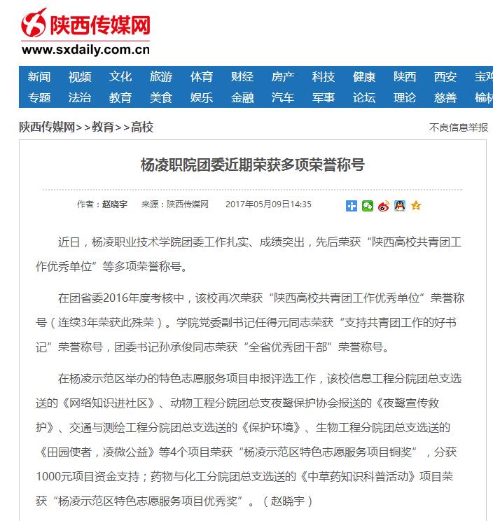 近日,杨凌职业技术学院团委工作扎实、成绩突出,先后荣获“陕西高校共青团工作优秀单位”等多项荣誉称号。
