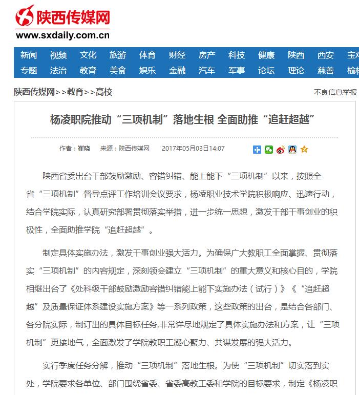 【陕西传媒网】杨凌职院推动“三项机制”落地生根 全面助推“追赶超越”