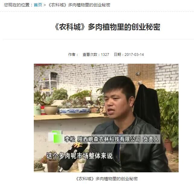 近日,杨凌电视台《农科城》栏目组,对我院毕业生李松和他的多肉大棚进行了采访。从2015年至今为止,分别在汉中、杨凌建立了4个多肉大棚。眼下,李松的多肉产业已经步入正轨,谈到未来打算,李松表示他看好多肉行业,将会继续扩大市场规模,同时开辟网络销售途径,扩宽销路,将多肉事业进行到底。
