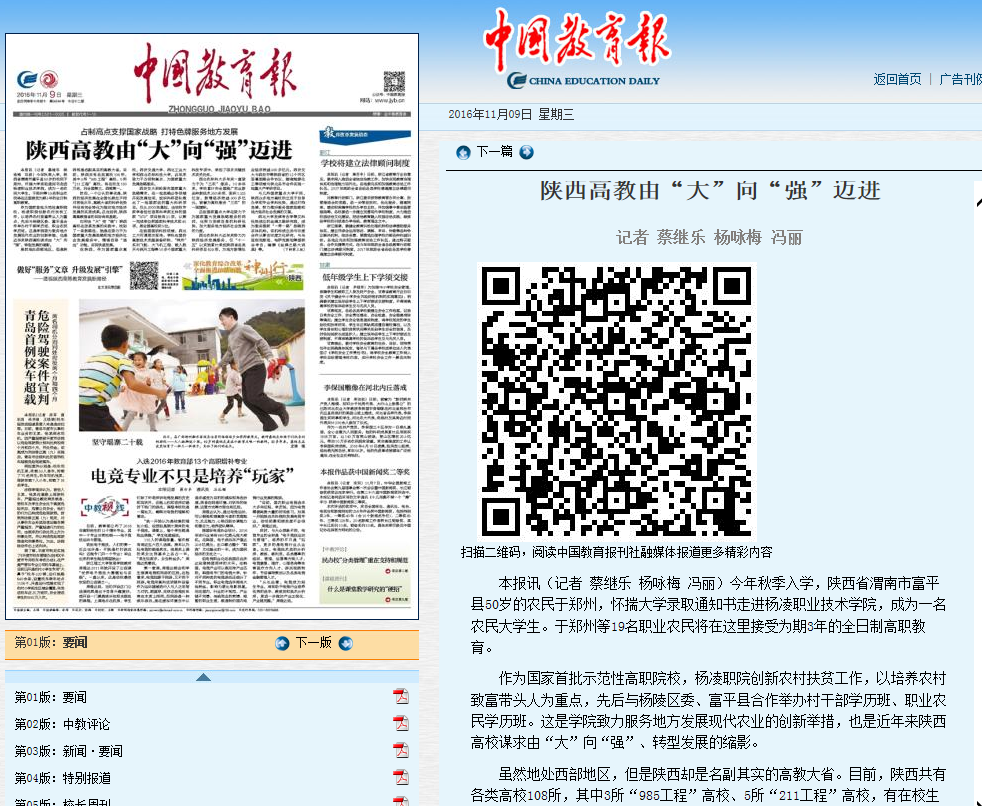 119日,《中国教育报》头版头条以“陕西高教由“大”向“强”迈进”报道了我院精准扶贫工作(详情进入)