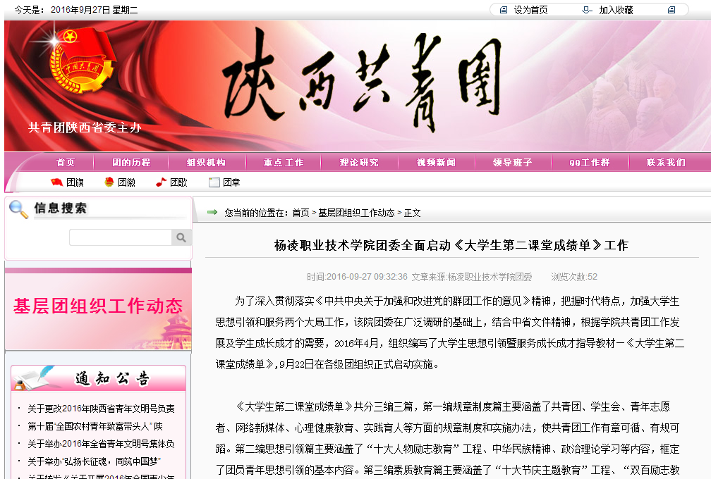 【陕西共青团】杨凌职院团委全面启动《大学生第二课堂成绩单》工作