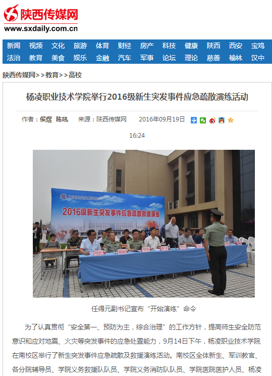 【陕西传媒网】杨凌职院举行2016级新生突发事件应急疏散演练活动