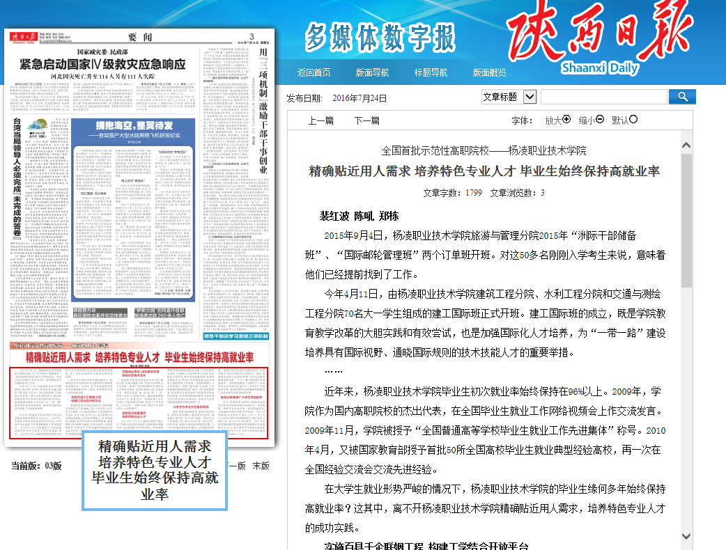 在大学生就业形势严峻的情况下,杨凌职业技术学院的毕业生缘何多年始终保持高就业率?这其中,离不开杨凌职业技术学院精确贴近用人需求,培养特色专业人才的成功实践。
