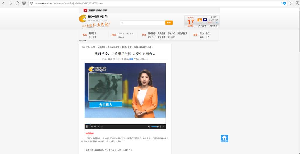 【郴州电视台】陕西杨凌:三轮摩托自燃 大学生火海救人