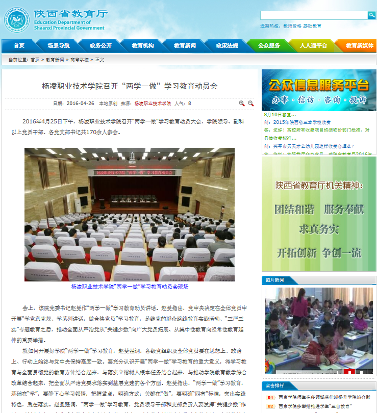 【陕西省教育厅网】杨凌职院召开“两学一做”学习教育动员会