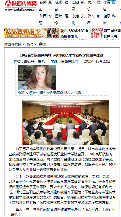 为了更好地实现优质教学资源共建共享,近日,城市水净化技术专业教学资源库建设研讨会在杨凌职业技术学院召开。19所高职院校专家代表及两个共建企业、两个数据平台建设企业代表应邀参加了会议。杨凌职业技术学院党委书记赵曼书记出席并致辞,副院长张永良、教务处负责人及专业骨干教师代表参加会议。