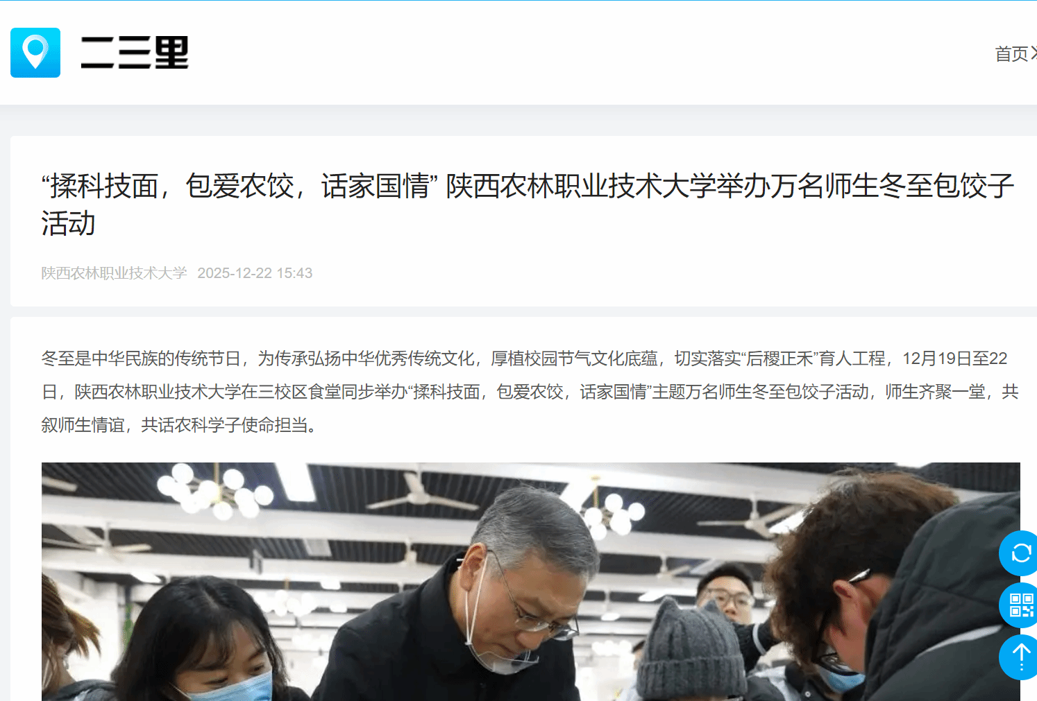 【二三里】“揉科技面,包爱农饺,话家国情” 陕西农林职业技术大学举办万名师生冬至包饺子活动