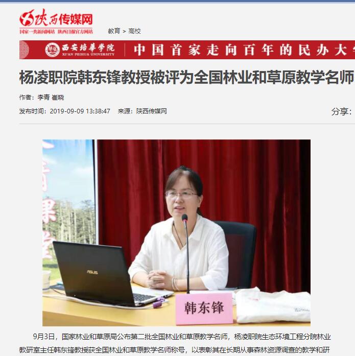 9月3日,国家林业和草原局公布第二批全国林业和草原教学名师,杨凌职院生态环境工程分院林业教研室主任韩东锋教授获全国林业和草原教学名师称号,以表彰其在长期从事森林资源调查的教学和研究工作中所做出的突出成就。