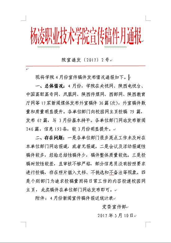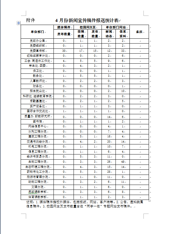 4月份宣传稿件发布情况通报