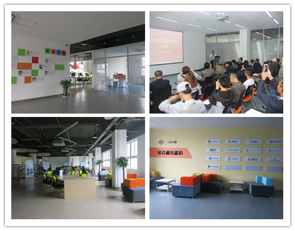A、B座设有创业咖啡、培训路演、信息发布、创业导师、服务机构、金融创新、创客空间等功能区。