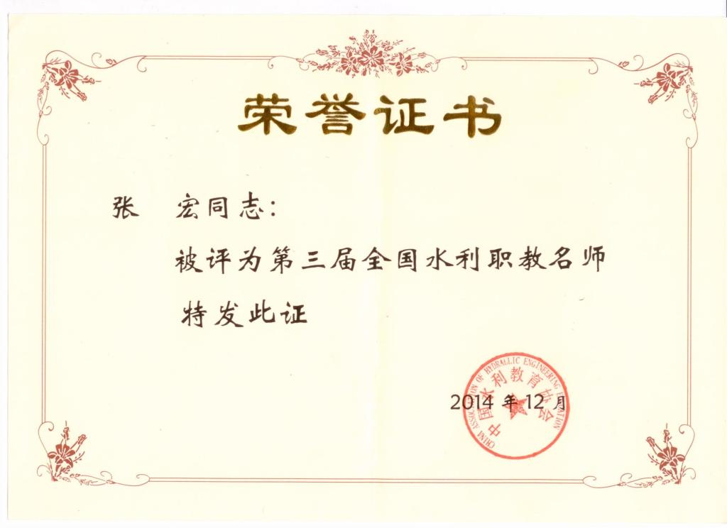 这一串串数字的背后,是张宏乐教敬业的最好诠释。2014年她荣获第三届“全国水利职教名师”称号