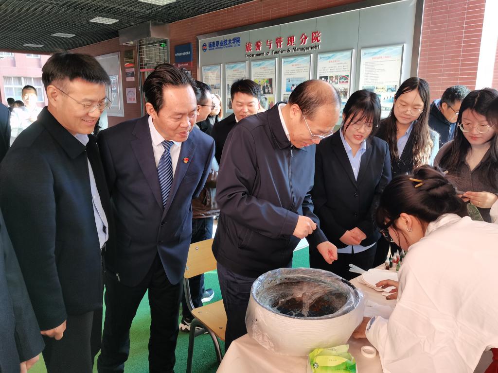 为弘扬中华优秀传统文化,近距离感受非物质文化遗产的独特魅力,烘托浓厚校园文化氛围,11月28日,旅游与管理学院举办“剪纸成花 漆扇舞风 蜡染映梦”非遗文化体验活动。校长仲伟周到场参观指导,与学生亲切互动,参与漆扇制作。